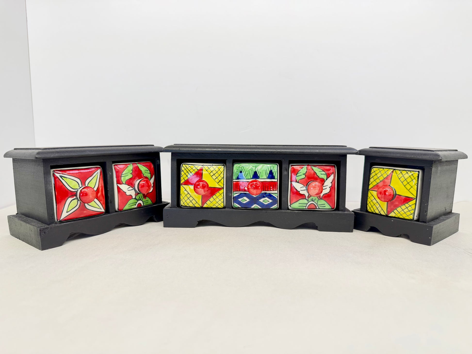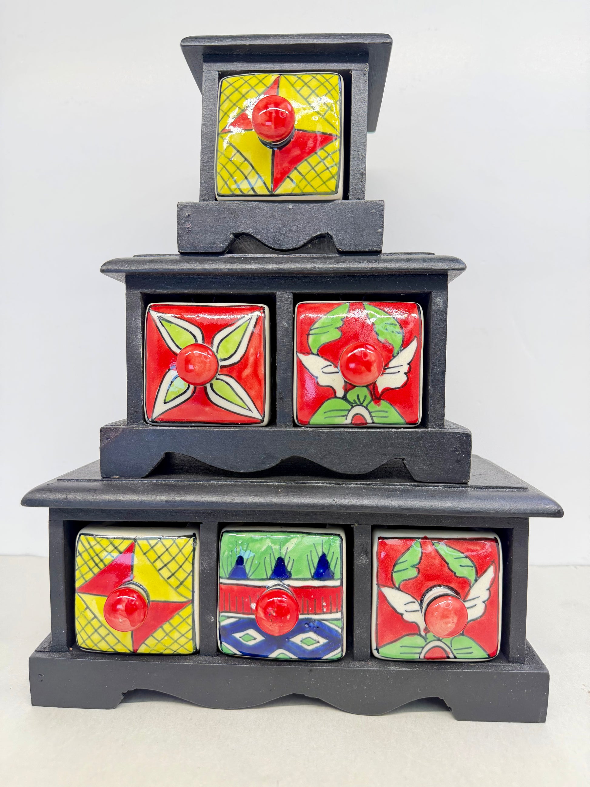 Hand Crafted Wooden Spice Rack: Ceramic Drawer Jewelry Box