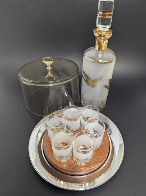 Vintage Gold Leaf Libby Federal Frosted Glass-Wild Game Bird/Hunter
