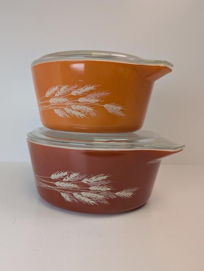 Vintage Pyrex 474-B, 475-B Harvest Wheat Casserole Set with Lids